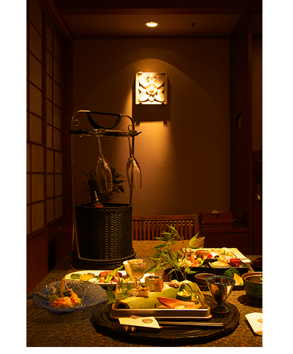 季節ごとに吟味した素材を使った、月替わりの献立てを用意しております。最高の食材と、四季を織りなす懐石料理をお愉しみください。