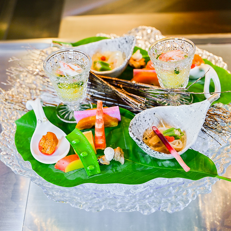 We offer a monthly changing menu using ingredients carefully selected for each season. Please enjoy Kaiseki cuisine that through the four seasons and the finest ingredients. Breakfast and dinner are served in your room. Each room is designed to be carried directly to the dining room without passing through the bedroom. Please enjoy your meals and beverages without worrying about others.